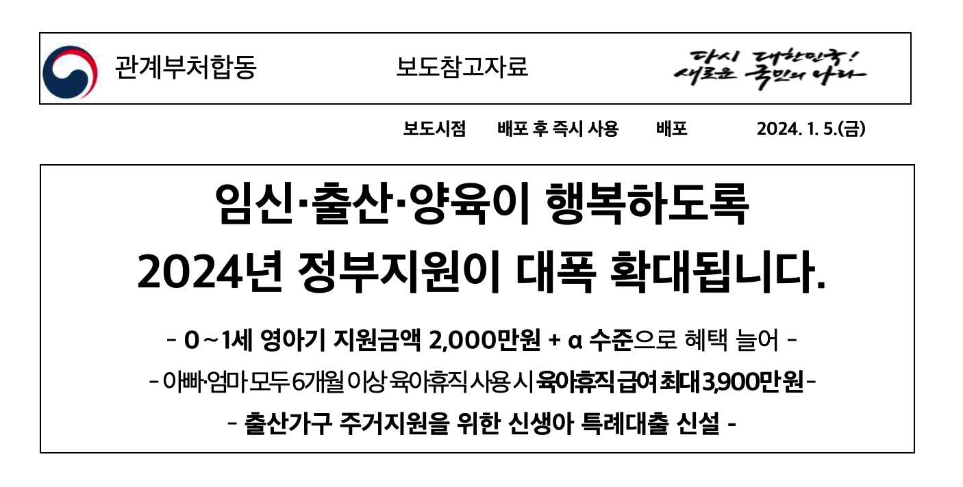 임신. 출산. 양육이 행복하도록 2024년 정부지원이 대폭 확대됩니다.